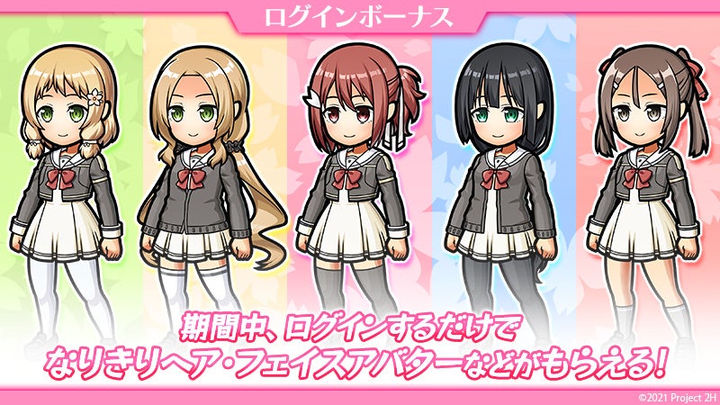 期間中、ログインするだけで「結城友奈」「東郷美森」「犬吠埼風」「犬吠埼樹」「三好夏凜」になりきることができるヘア・フェイスアバターなどがもらえます。
