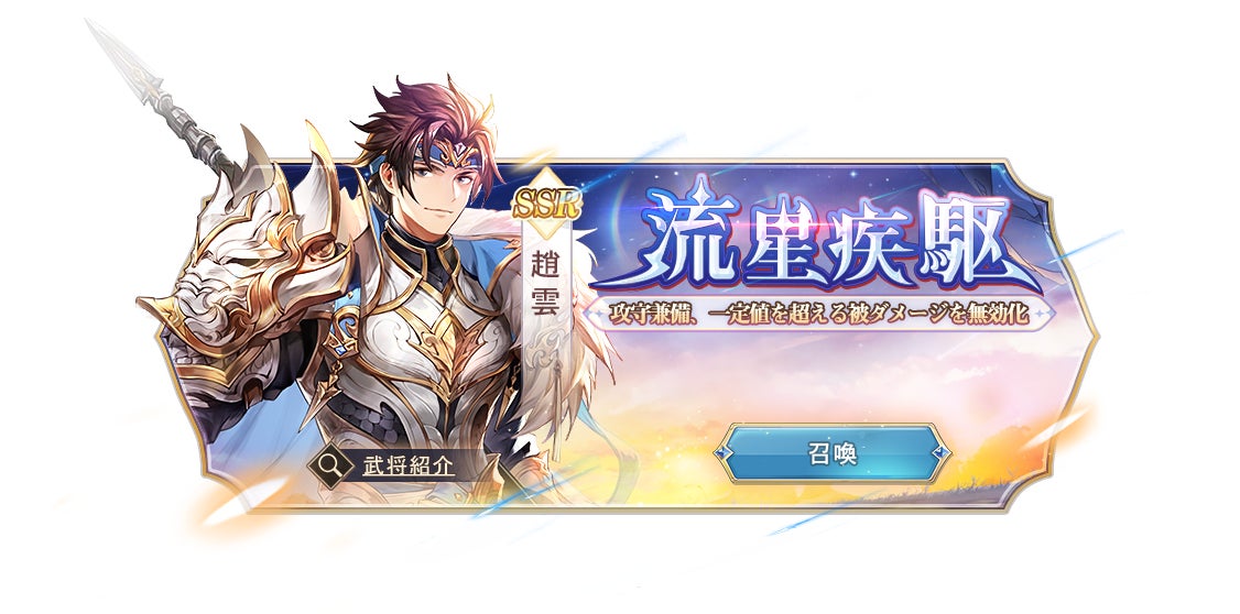 - 流星疾駆!期間限定新キャラである趙雲をゲット出来るイベントを開催中!