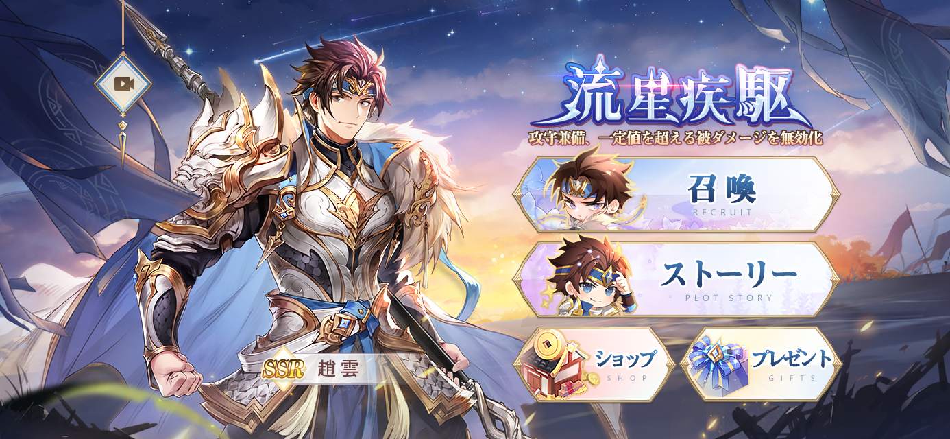 - 流星疾駆!期間限定新キャラである趙雲をゲット出来るイベントを開催中!