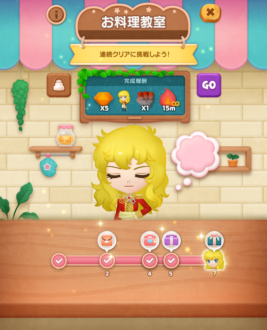 ノーマルステージを連続クリアし、指定された連勝数を達成すると報酬がもらえるイベントです。特定の連勝回数を達成すると「オスカル(SS)」が獲得できます。
