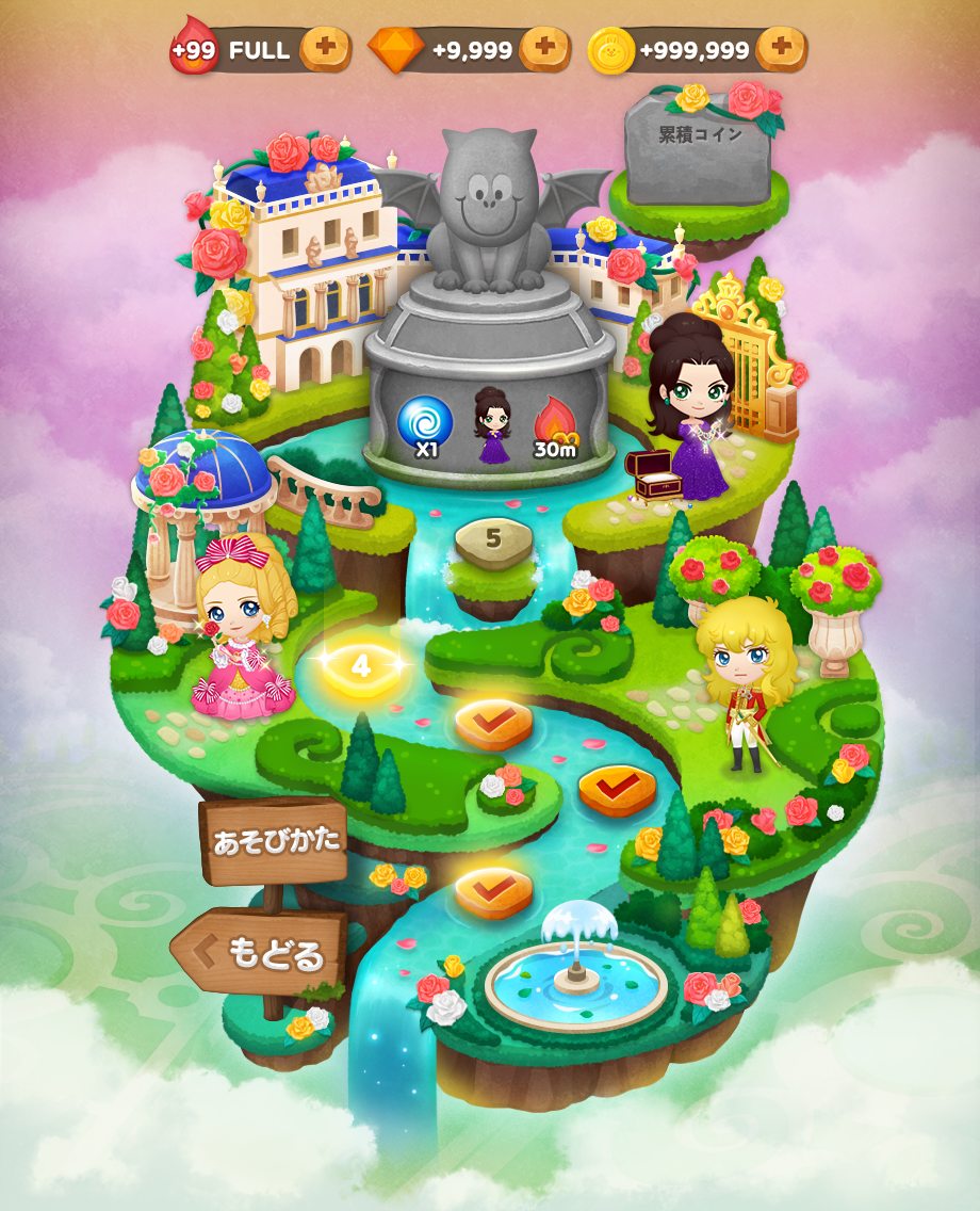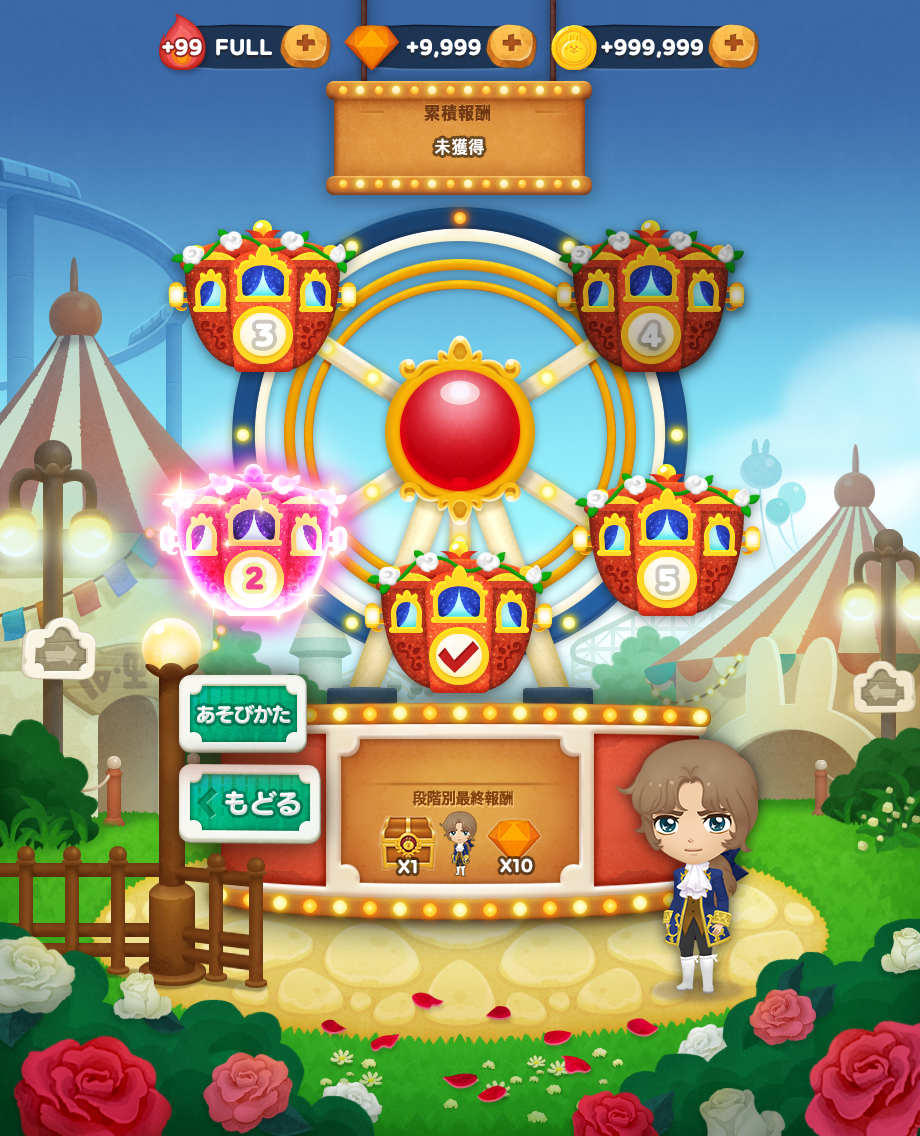 ステージをクリアしてサイコロを獲得し一周すると、豪華ゲーム内アイテムが獲得できます。