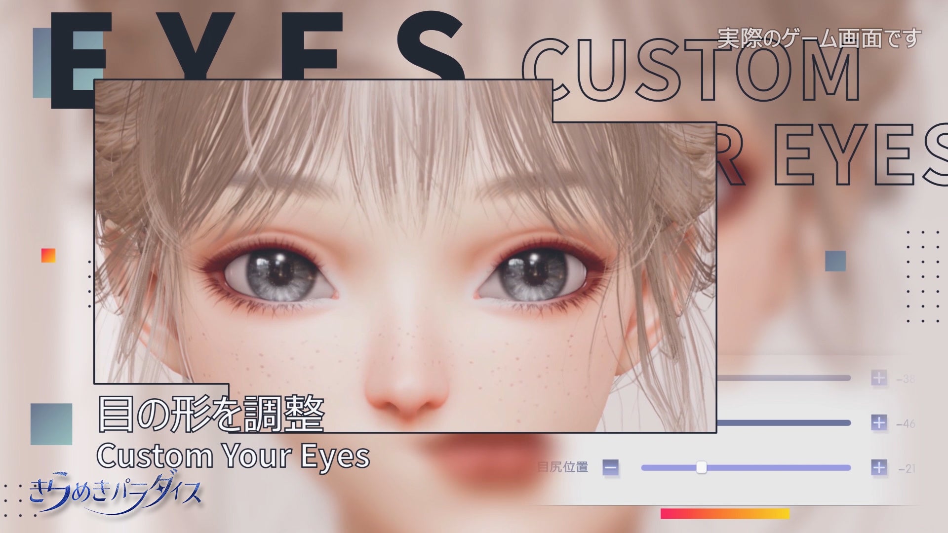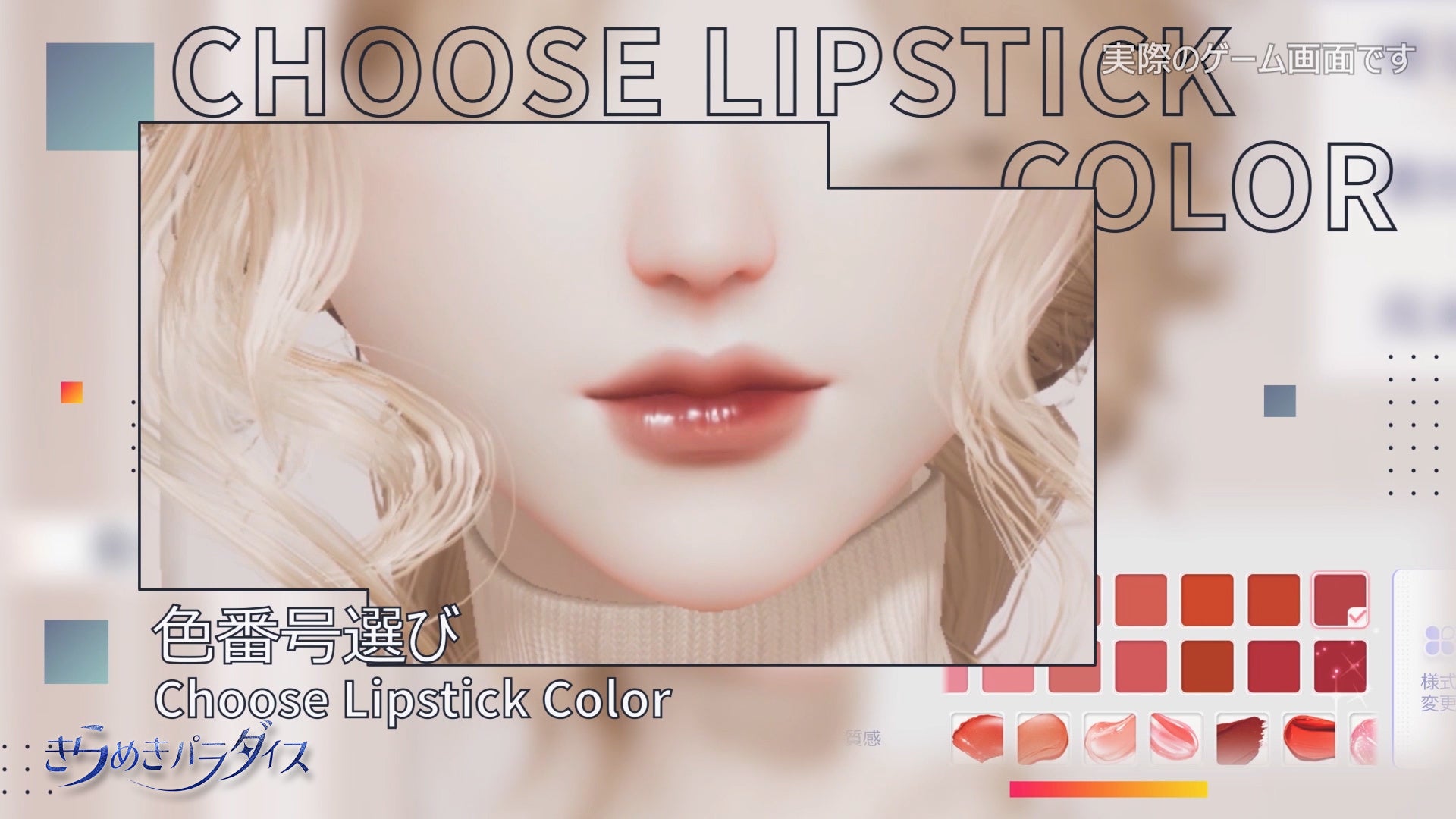 『きらめきパラダイス』では、特徴である自由度の高いキャラメイクシステムを利用して、理想の自分を思うままに表現できます。