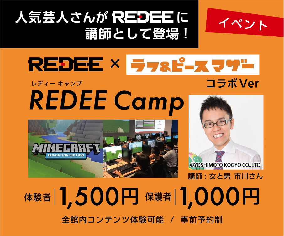 日本最大級のデジタル教育施設「REDEE(レディー)」(所在地:大阪府吹田市、レッドホースコーポレーション株式会社運営)では、株式会社ラフ&ピースマザー(東京都新宿区、代表者:代表取締役社長 生沼教行)と連携し、人気芸人が講師を勤める特別コラボバージョンの「REDEEキャンプ」を5月14日に開催しました。