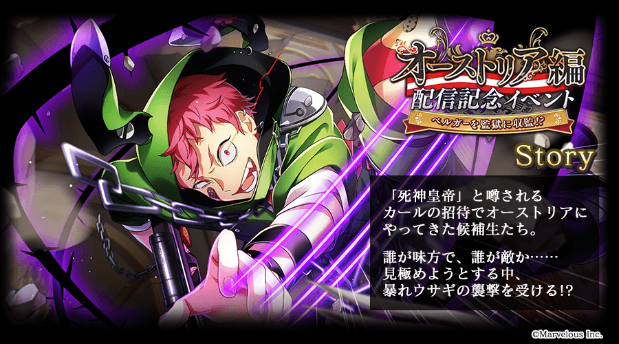 株式会社マーベラス(代表取締役社長 許田周一/所在地:東京都品川区)による、スマートフォンゲーム『千銃士:Rhodoknight』(読み:せんじゅうし ろーどないと 以降、『千銃士R』)は、6月13日より開催中のイベント「ベルガーを監獄に収監!?」にあわせて、イベント内で活躍する★3のマークス(CV:熊谷健太郎)とシャルルヴィル(CV:立花慎之介)のカードがピックアップで登場する期間限定ガチャを開催いたします。