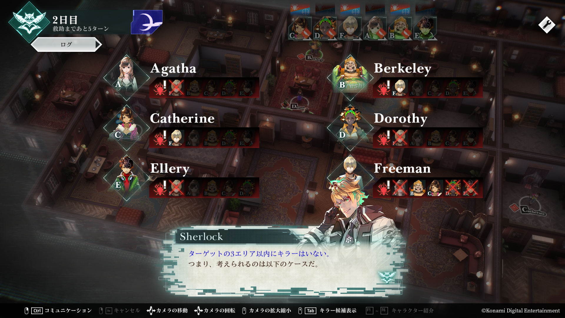 脱落者は無し、少人数プレーが可能!プレーヤーが複数キャラクターを制御できるため、2~4人の少人数で推理/騙し合いが楽しめます。