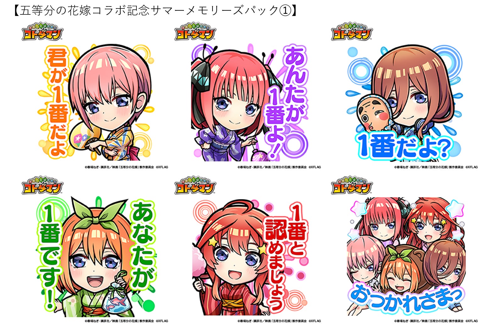株式会社ミクシィ(東京都渋谷区、代表取締役社長:木村 弘毅)が展開するエンターテインメント事業ブランド「XFLAG (エックスフラッグ)」は、スマホアプリの「ことば」で闘う新感覚RPG「共闘ことばRPG コトダマン」(以下コトダマン)において、「コトダマン」 × 映画「五等分の花嫁」とのコラボイベントを2022年6月23日(木)より開催します。