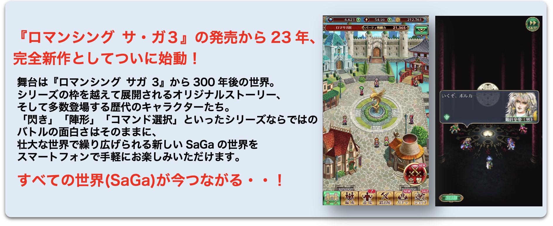 なお、「ロマンシング サガ リ・ユニバース」は、アカツキとスクウェア・エニックスとの共同開発による、23 年ぶりとなる「ロマンシング サガ」完全新作の新規ゲームアプリです。