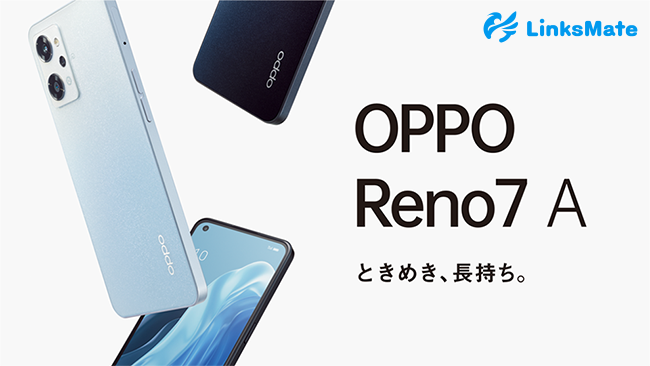 株式会社LogicLinks(以下LogicLinks、本社:東京都渋谷区、代表取締役社長:春田康一)は、MVNOサービス「LinksMate(リンクスメイト)」において、2022年6月23日(木)より新規端末「OPPO Reno7 A」を43,800円(税込み)にて販売を開始することをお知らせいたします。