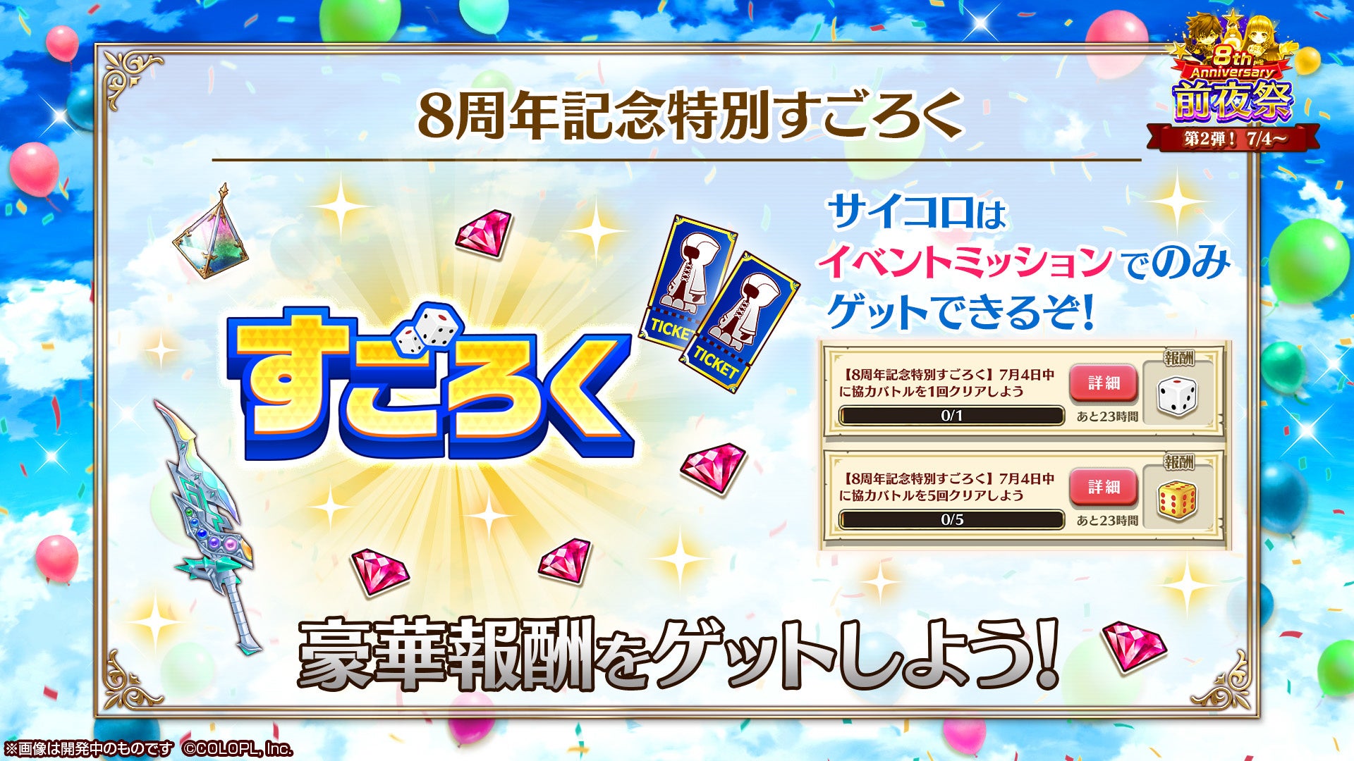 「前夜祭キャンペーン 第2弾」の開催に合わせて、「8周年記念すごろく」を開催いたします。