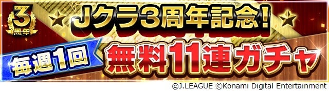 ◆Jクラ3周年記念!毎週1回無料11連ガチャ