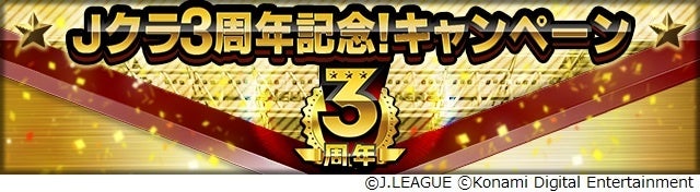 株式会社コナミデジタルエンタテインメントは、モバイルゲーム『Jリーグクラブチャンピオンシップ』(以下、『Jクラ』)の配信開始3周年を記念したキャンペーンを開始したことをお知らせします。