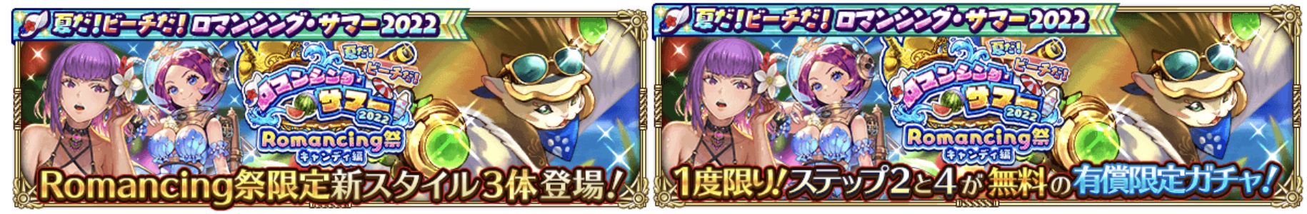 新ガチャ「夏だ!ビーチだ!ロマンシング・サマー 2022 Romancing祭 キャンディ編」を開催いたします。