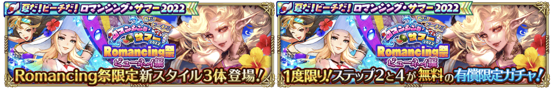 新ガチャ「夏だ!ビーチだ!ロマンシング・サマー 2022 Romancing祭 ビューネイ編」を開催いたします。