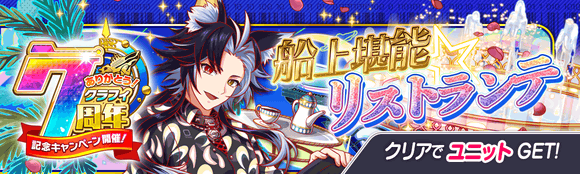 7周年イベントは「豪華客船」がテーマ!無料10連チケットガチャやログインボーナスを始め、豪華コンテンツが盛りだくさん!なんと最大367連分のガチャが無料!!