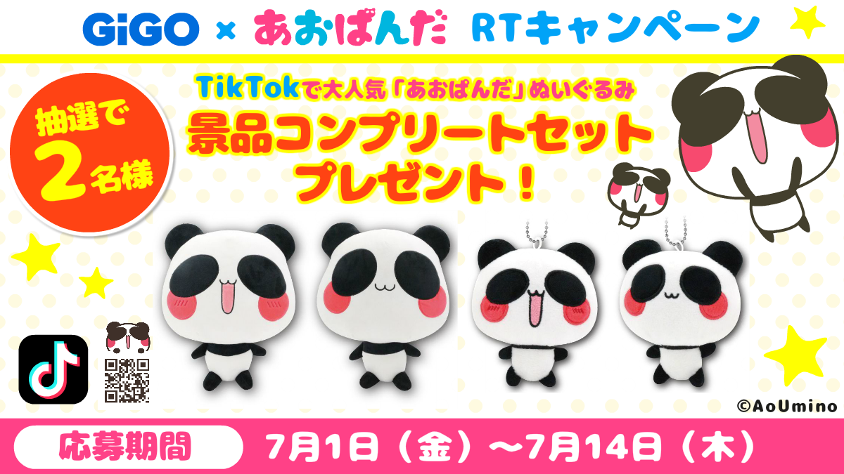 株式会社GENDA GiGO Entertainment(本社:東京都大田区 代表取締役社長:上野 聖)は、当社※1の対象店舗におきまして、2022年7月15日(金)より、SNSで話題のキャラクター「あおぱんだ」クレーンゲーム専用景品が登場いたします。当社におきましてTikTokの人気キャラクターの景品化は初となります。