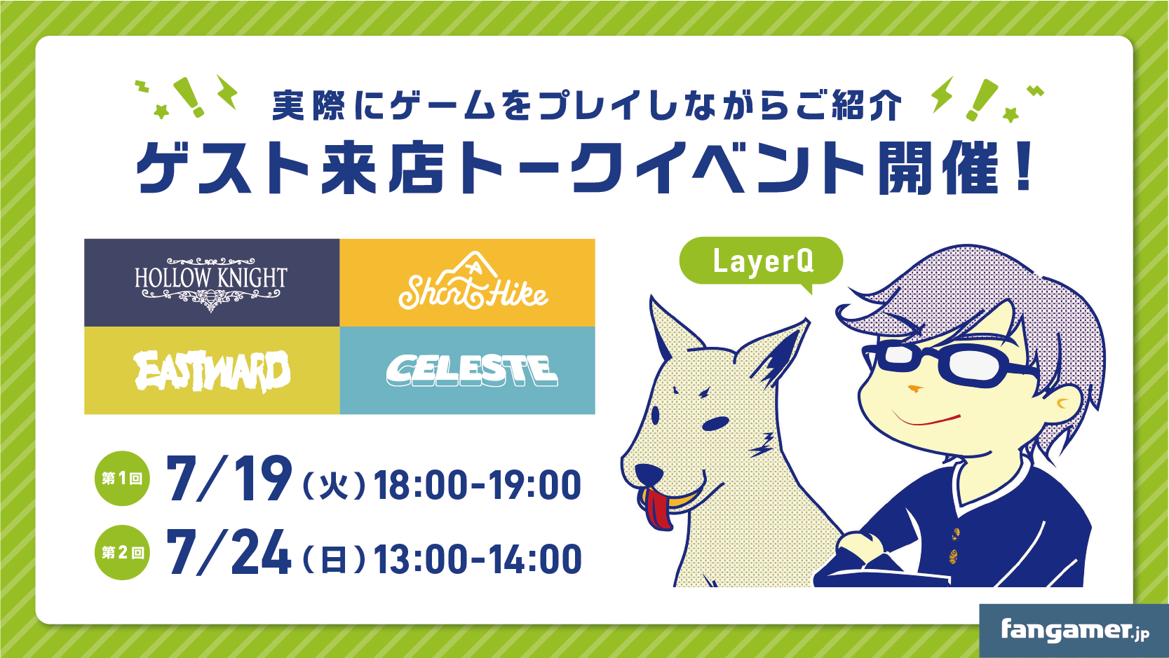LIVE TV ハチスタ内にあるLIVEコーナーにて、Fangamer Japanスタッフでもあり、インディーゲーム実況者でもある「LayerQ」によるトークイベントを開催いたします。Fangamer Japanで取り扱うゲームタイトルを実際にプレイしながら、おすすめグッズの魅力をご紹介いたします!