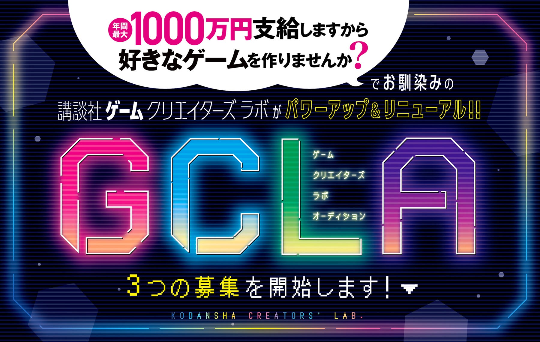 「年間最大1000万円支給しますから好きなゲームを作りませんか?」でお馴染みの講談社ゲームクリエイターズラボがパワーアップ&リニューアル!!