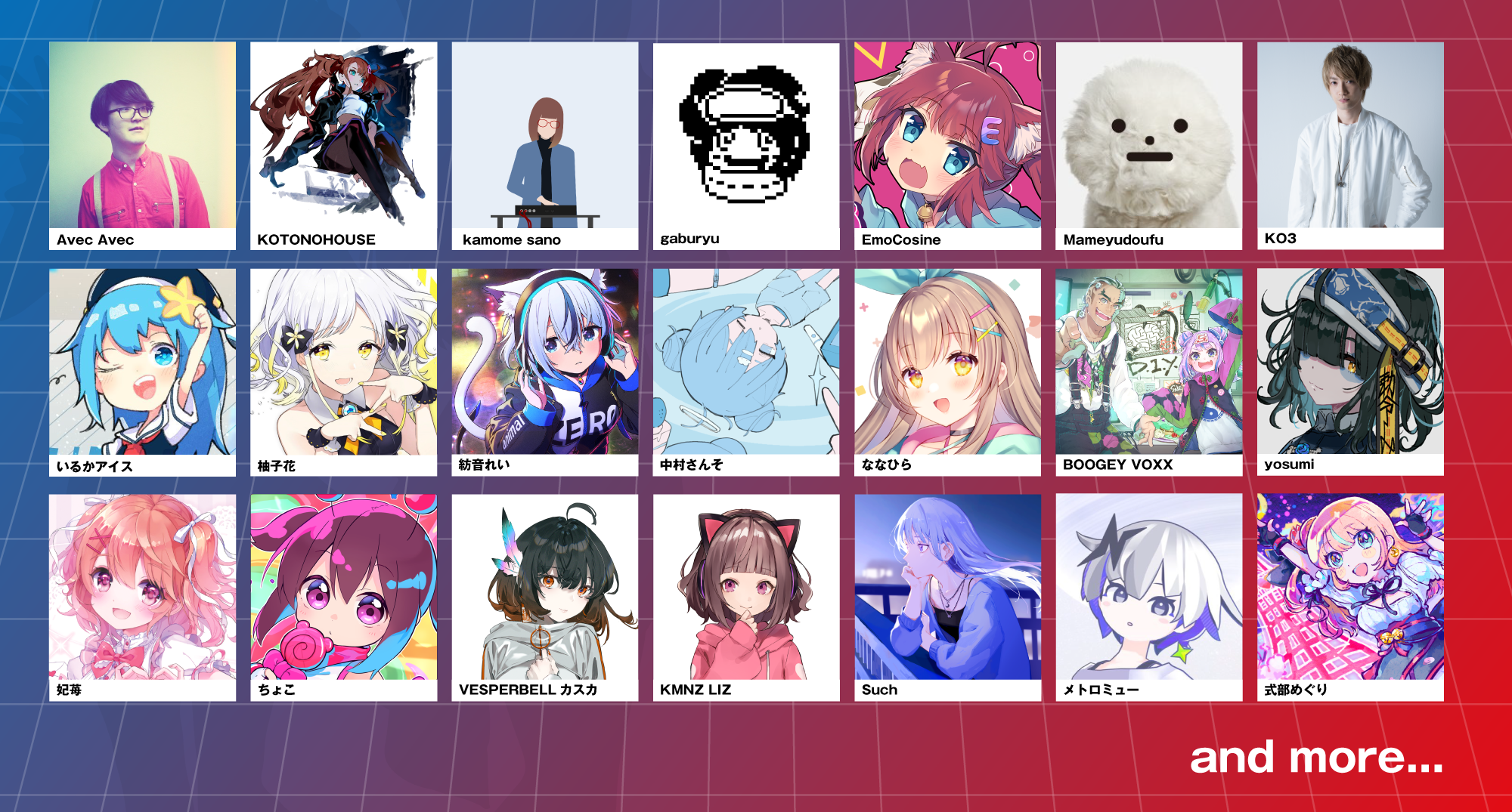 『NEARIS』に収録予定となる楽曲のアーティスト一覧です。界隈の隔たりを設けず、幅広いジャンルとアーティストの楽曲をプレイすることができます。