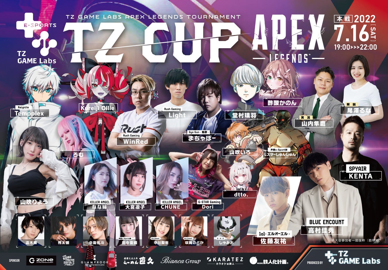 株式会社鉄人化計画(本社:東京都目黒区、代表取締役社長:根来 拓也)が展開するeスポーツ事業「TZ GAME Labs」(よみ方:ティーゼット ゲーム ラボ)は、大人気FPSバトルロイヤルゲーム『Apex Legends』の大会を開催します。ゲームコミュニケーションフィールドを今年3月から展開しているカラオケの鉄人の新事業「TZ GAME Labs」主催の賞金総額50万円相当(副賞を含む)の大会です。先日のリリースに追加して、本リリースでは出場チームの全メンバーが決定しましたのでその発表と、ご協賛いただいている副賞についてご紹介します。