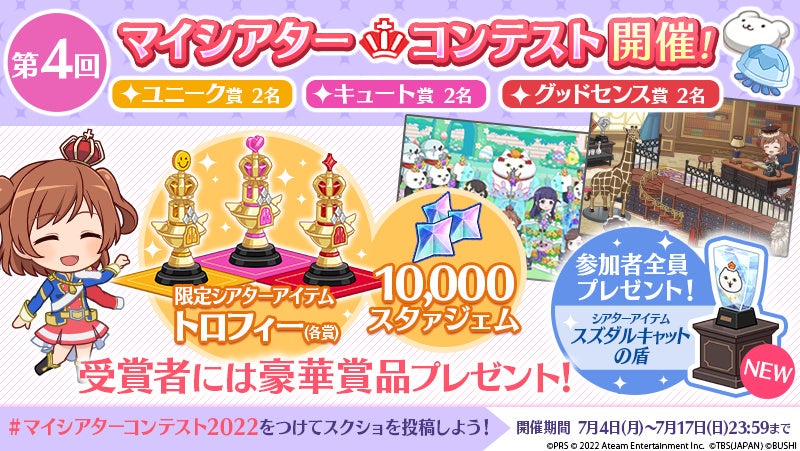 後日各テーマ2名ずつ受賞者を発表させていただきます。受賞された方には、入賞者限定の「各賞のトロフィー(シアターアイテム)」と「10,000スタァジェム(ゲーム内通貨)」をプレゼント!