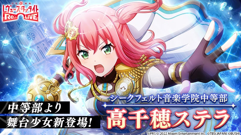 株式会社エイチームのグループ会社である株式会社エイチームエンターテインメント(本社:愛知県名古屋市、代表取締役社長:中内之公)と、株式会社ブシロード(本社:東京都中野区、代表取締役社長:木谷高明、以下ブシロード)および、株式会社TBSテレビ(東京都港区赤坂、代表取締役社長:佐々木卓、以下TBS)が共同開発したゲームアプリ『少女☆歌劇 レヴュースタァライト -Re LIVE-(スタリラ)』にて、シークフェルト音楽学院中等部の新キャラクターが舞台少女として初登場します。第1弾として、2022年7月4日(月)メンテナンス終了後より、「高千穂ステラ」が登場。中等部の新たな舞台少女は今後、随時登場する予定です。