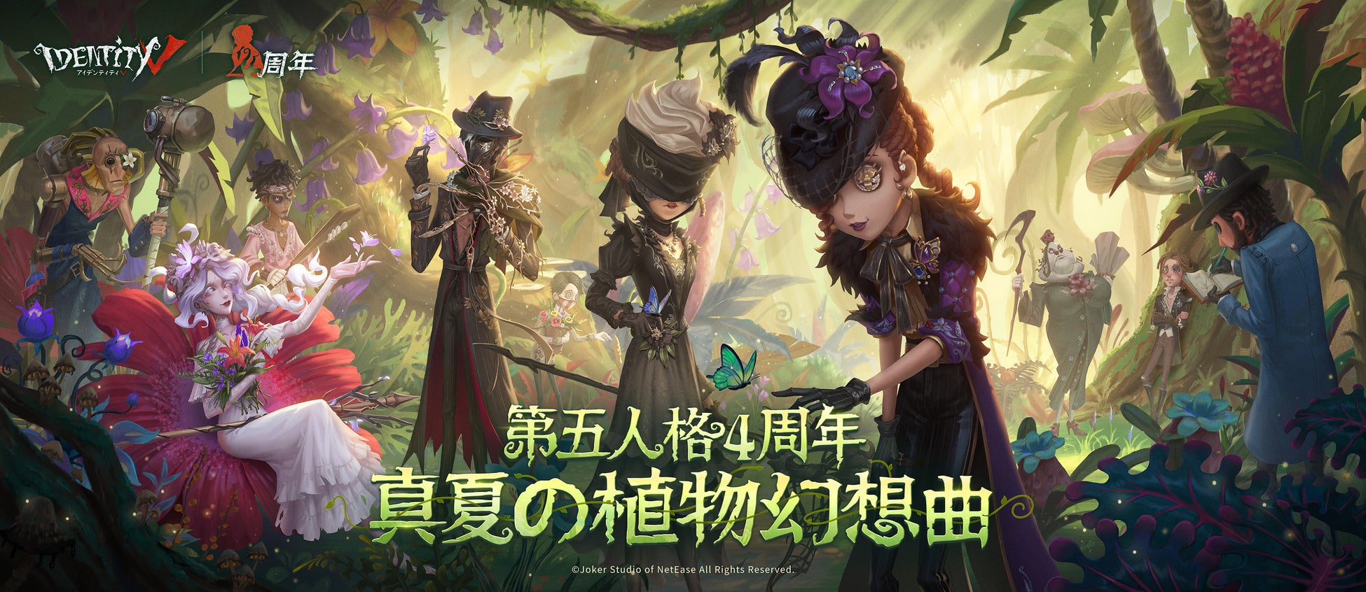 NetEase Games初の1v4非対称対戦型モバイルゲーム『Identity Ⅴ』4周年記念イベントが始まりました。ベルスタインが植物の狂想曲を奏でながら、皆さんの参加を待っています。今すぐ荘園にログインして新編を体験しましょう。