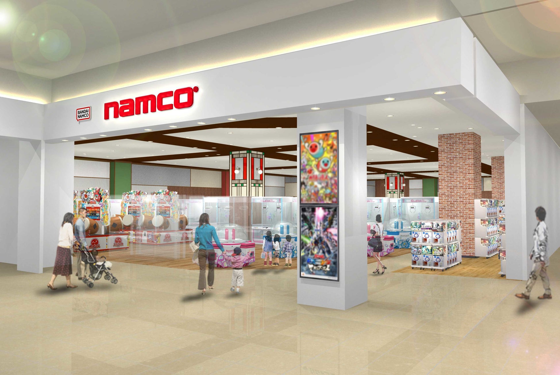 店内には、ナムコ限定景品やアミューズメント専用景品、他にも菓子景品など、多種多様な景品をそろえたクレーンゲームを中心に、みんなで盛り上がれるアーケードゲームや音楽ゲーム、カップルや学生に人気のプリントシール機、お子様が大好きな乗り物などをそろえます。