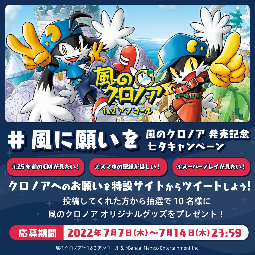 キャンペーンの詳細は「風のクロノア 発売記念七夕キャンペーン」特設サイトをご確認ください。
