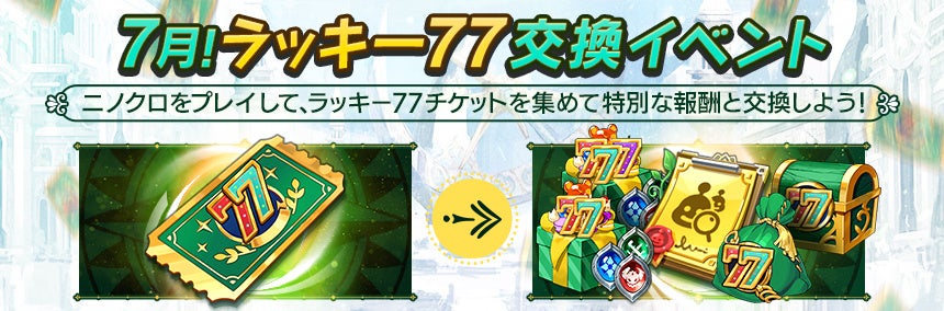 イベントミッションのクリアで獲得できる「ラッキー77チケット」を使用して、各種召喚チケットや証など様々なアイテムを獲得できるボックスアイテム等と交換できます。