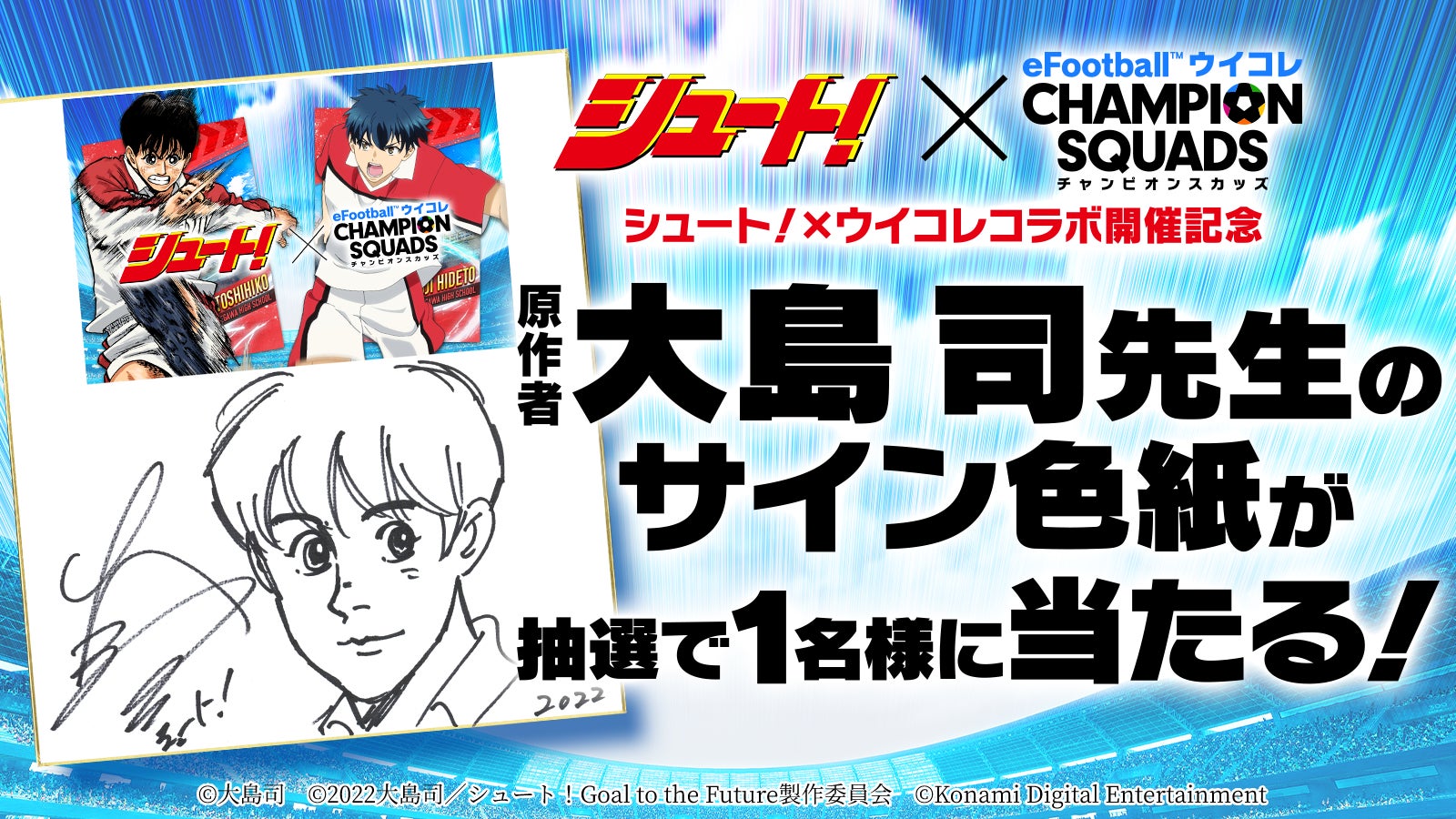 株式会社コナミデジタルエンタテインメントは、モバイルゲーム『eFootball™ ウイコレ CHAMPION SQUADS』(以下、『ウイコレ』)と「シュート!」とのコラボレーションを記念したキャンペーンを本日開始したことをお知らせします。