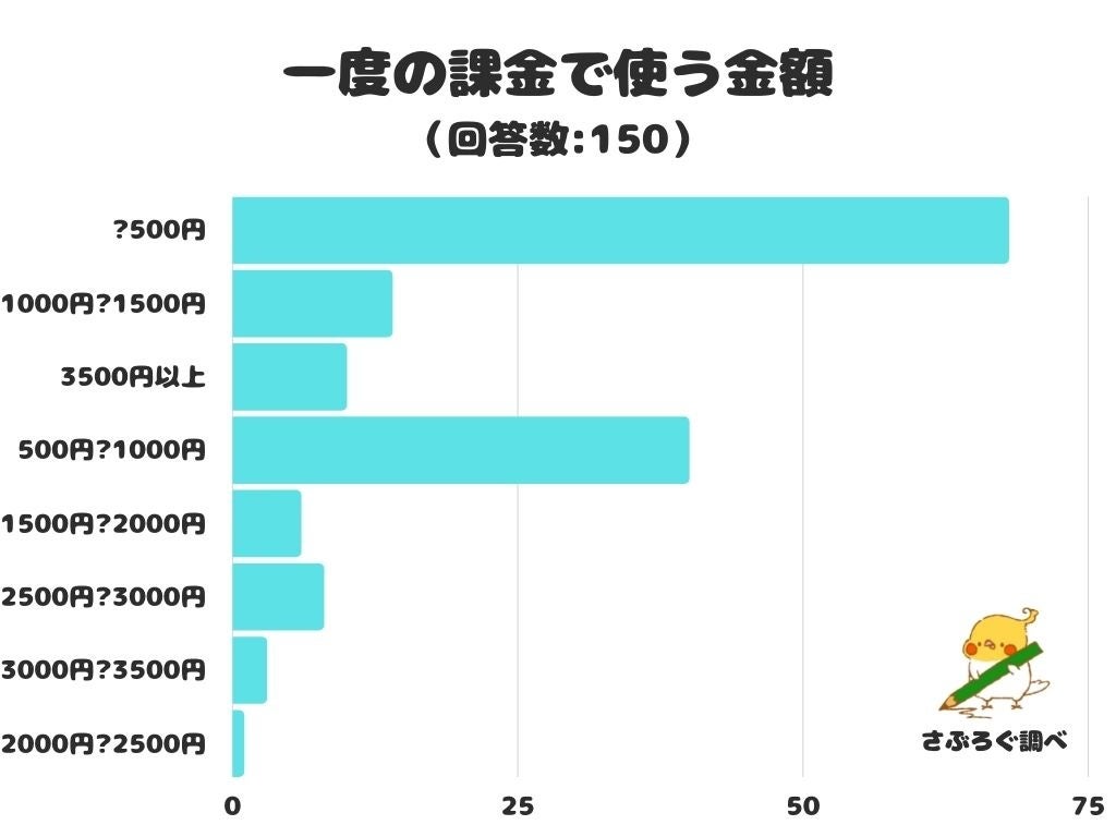一度の課金で使う金額をアンケートにて調査したところ、1位は「~500円」でした。