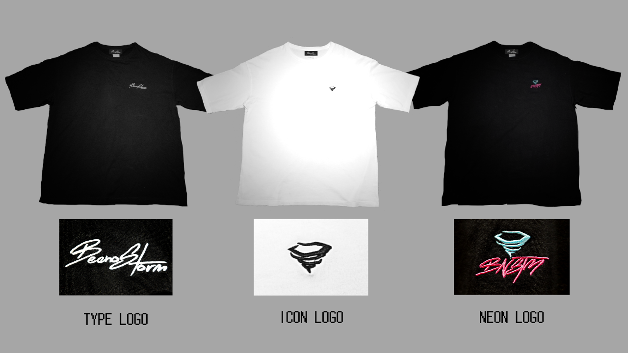 BIGシルエットにこだわったオリジナルTシャツ。5.6オンスの程よい厚みで、首元はよれにくいダブルステッチ仕様。Nozle Graphicsデザインのストームロゴをシンプルに刺繍で表現しました。