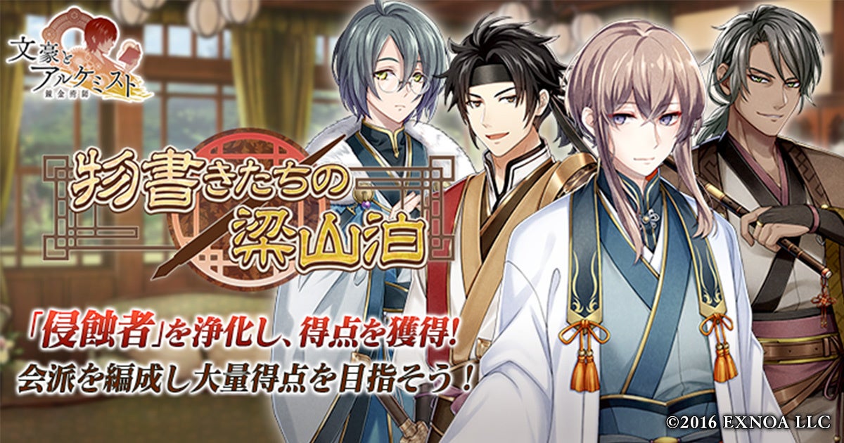 合同会社EXNOA(本社:東京都港区、CEO:村中 悠介、URL:https://games.dmm.com/)が運営するDMM GAMESは、7月11日(月)より、女性向け文豪転生シミュレーションゲーム「文豪とアルケミスト」において、イベント『調査任務「物書きたちの梁山泊」』と限定召装『物書きたちの梁山泊』を開催いたしました。