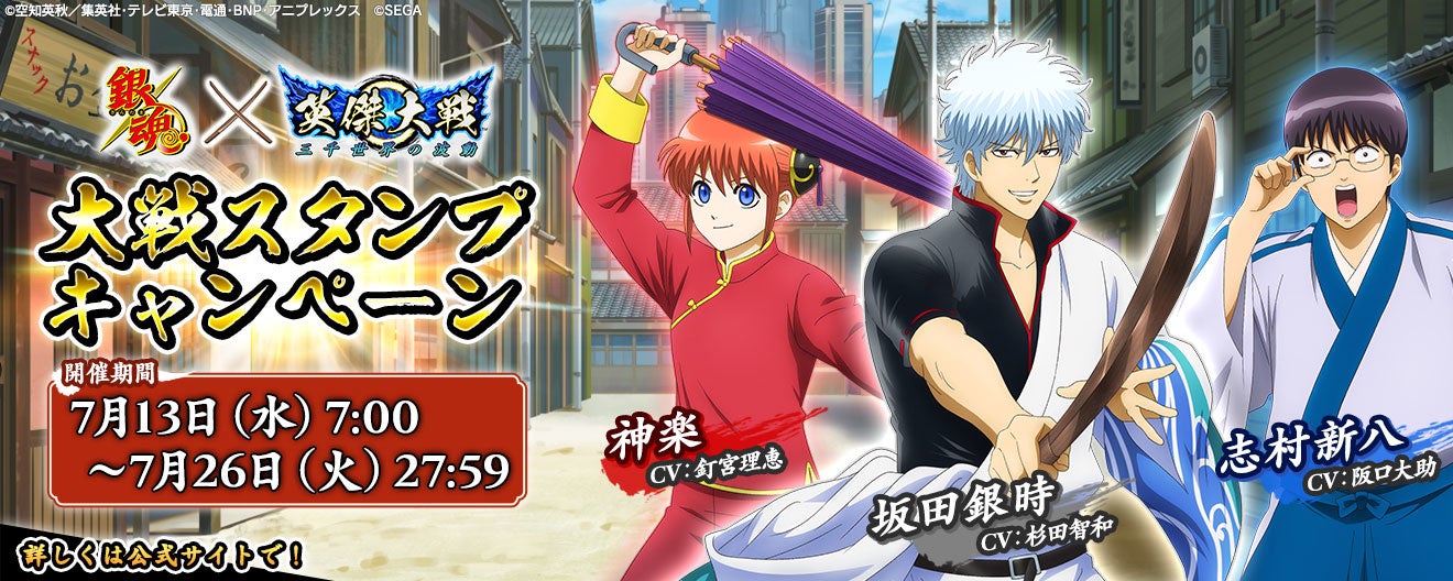 株式会社セガは、現在稼働中のアミューズメント施設向け対戦型カードアクションゲーム『英傑大戦 三千世界の波動』(以下、英傑大戦)において、TVアニメ『銀魂』とのコラボイベントを2022年7月13日(水)から開始したことをお知らせいたします。