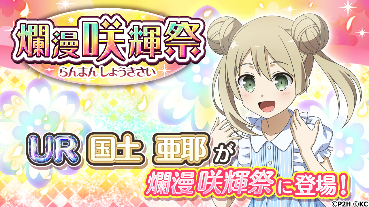 ※『UR 大事な想い出 国土亜耶』が登場する爛漫咲輝祭からは『UR 喜びを運ぶ 藤森水都』は登場しません。また、『UR 喜びを運ぶ 藤森水都』が登場する爛漫咲輝祭からは『UR 大事な想い出 国土亜耶』は登場しません。