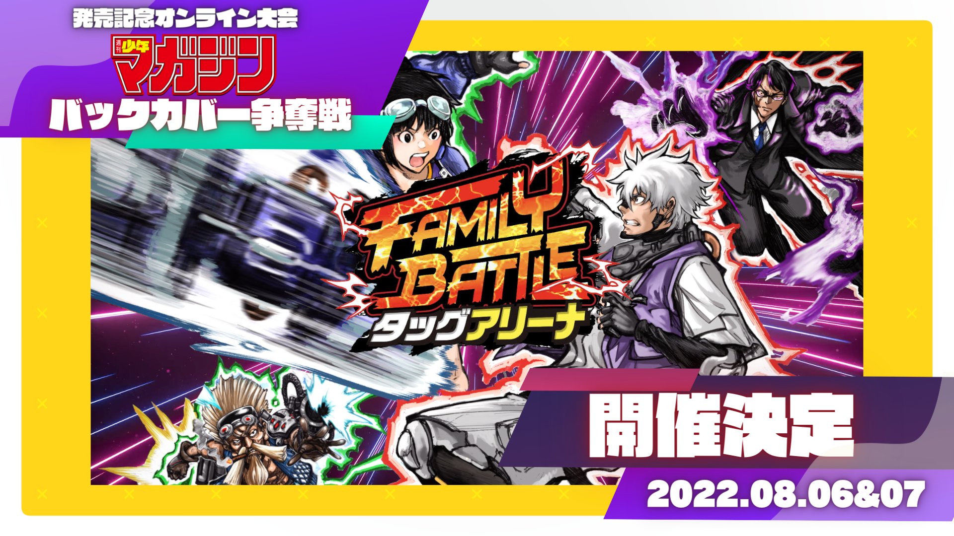 (「FAMILY BATTLE タッグアリーナ 週刊少年マガジン バックカバー争奪戦」は、オンラインによるチームエントリー制の講談社ゲームクリエイターズラボ公式大会です)