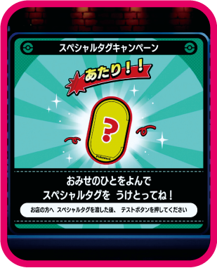 ナムコのお店の「ポケモンメザスタ」で当たりの演出が発生すると、その場でスペシャルタグ「ラティアス」をプレゼントします。スペシャルタグ「ラティアス」は、「ダブルチェイン1弾」から登場する、味方のポケモンと一緒に攻撃できる新たなタグ「チェインタグ」で、これからポケモンメザスタを始める方にも強力なパートナーになれるタグです。