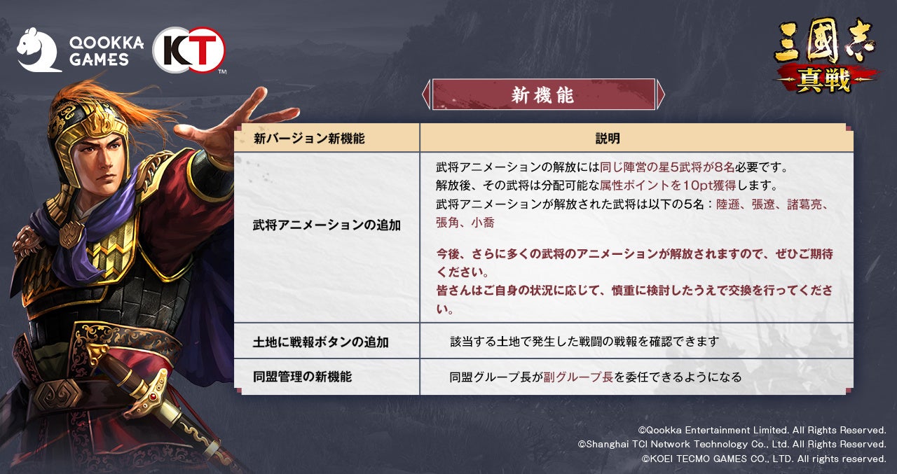 Qookka Entertainment Limitedが株式会社コーエーテクモゲームスの歴史シミュレーションゲーム『三國志13』のIPを使用し、同社監修の下で開発されたスマートフォン向けゲームアプリ『三國志 真戦』。同ゲームは、本日7月14日(木)に、大型アップデートを実施することをお知らせいたします。