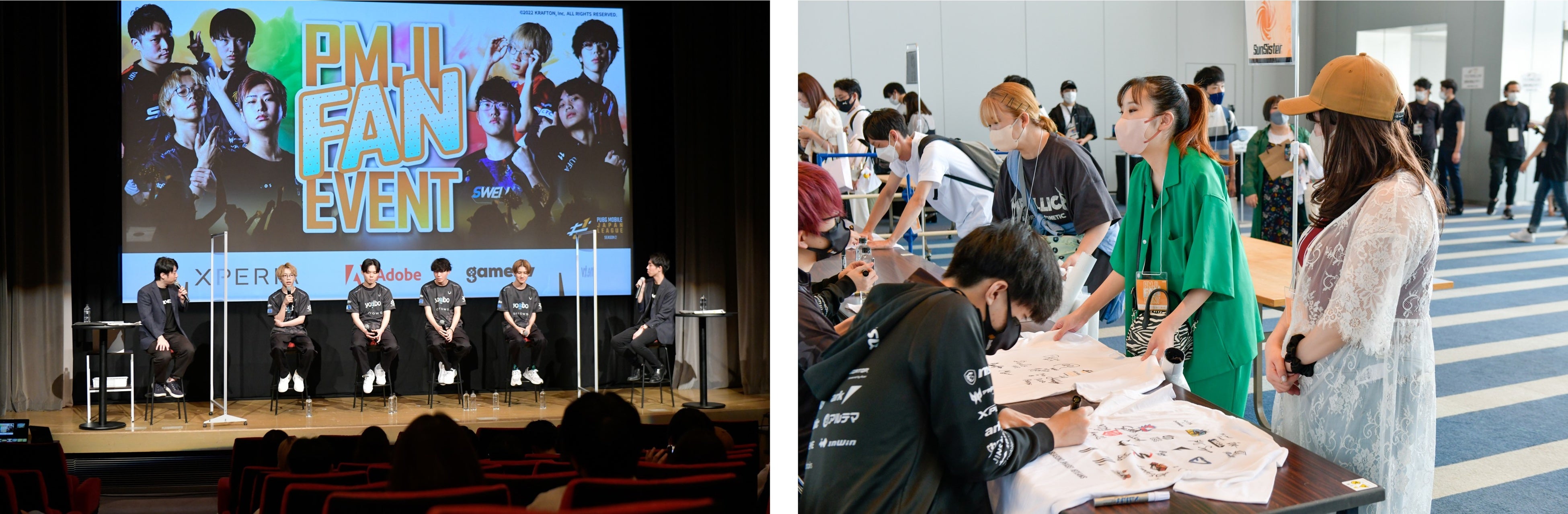 PMJL SEASON2 Phase1で優勝し、世界大会進出を決めた「DONUTS USG」をはじめ、PMJLに参加する8つのプロチームによる豪華トークショーやサイン会などを実施した他、PMJLオリジナル占いやプロ選手を交えたPUBG MOBILE試遊など本イベントでしか触れられないコンテンツをファンの皆様に体験いただきました。