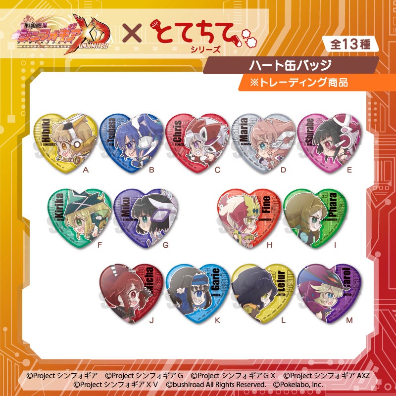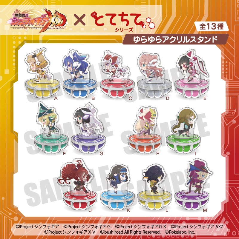 アニメ、ゲームあらゆるジャンルのキャラクター商品や販促グッズの企画、製造、販売をする株式会社プレイフルマインドカンパニー(代表取締役:大塚清隆、本社:東京都台東区)はシンフォニックバトルRPG『戦姫絶唱シンフォギアXD UNLIMITED』より、オリジナル描き起こしイラスト「とてちてシリーズ」で描き起こしたキャラクターの[ゆらゆらアクリルスタンド]や[ハート缶バッジ]