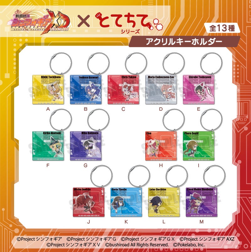 アニメ、ゲームあらゆるジャンルのキャラクター商品や販促グッズの企画、製造、販売をする株式会社プレイフルマインドカンパニー(代表取締役:大塚清隆、本社:東京都台東区)はシンフォニックバトルRPG『戦姫絶唱シンフォギアXD UNLIMITED』より、オリジナル描き起こしイラスト「とてちてシリーズ」で描き起こしたキャラクターの[ゆらゆらアクリルスタンド]や[ハート缶バッジ]