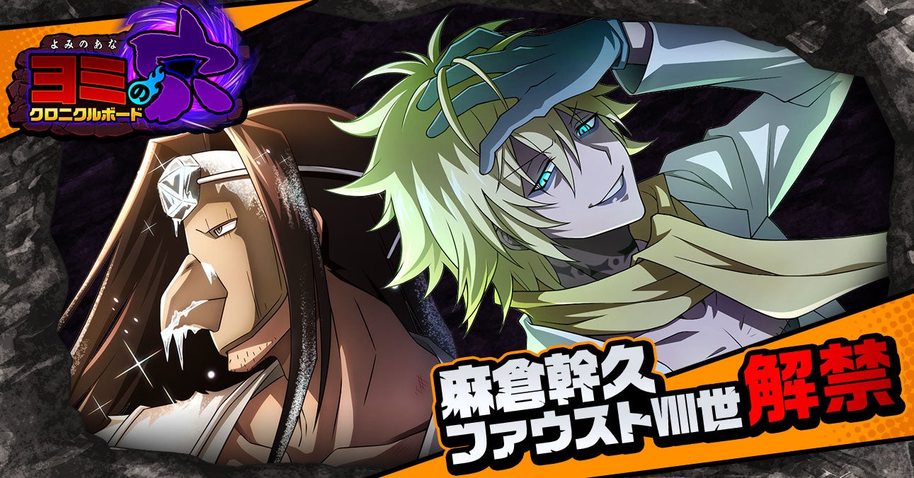 麻倉幹久とファウストVIII世のクロニクルボードを解放いたします!ミッションをクリアしてキャラを更に強化しましょう。