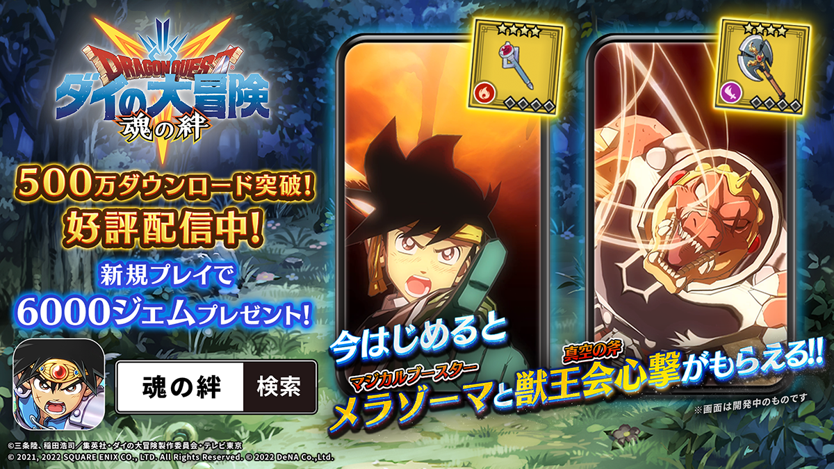 スマートフォン向け爽快”大爆進”RPG「ドラゴンクエスト ダイの大冒険 –魂の絆-」が現在好評配信中!