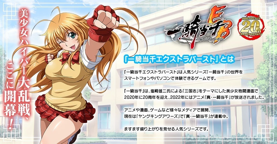 株式会社マーベラス(代表取締役社長 佐藤澄宣/所在地:東京都品川区)は、原作が20周年を迎えた人気シリーズ「一騎当千」のAndroid/iOS向けゲームアプリ『一騎当千エクストラバースト』で、2022年7月19日(火)からTVアニメ「金装のヴェルメイユ」とのコラボイベントを開始することをお知らせいたします。
