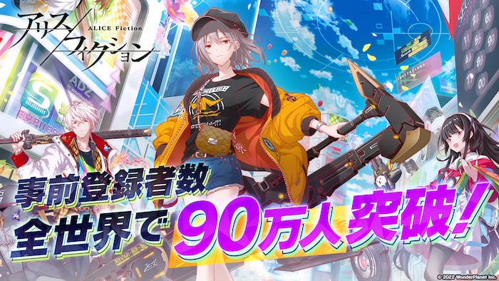 エンターテインメントサービス事業を行うワンダープラネット株式会社(本社:愛知県名古屋市、代表取締役社長CEO:常川友樹、東証グロース:証券コード4199、以下当社)は、今夏全世界同時配信リリース予定の新作スマートフォン向けゲーム『アリスフィクション』の事前登録者数が、全世界で90万人を突破したことをお知らせいたします。