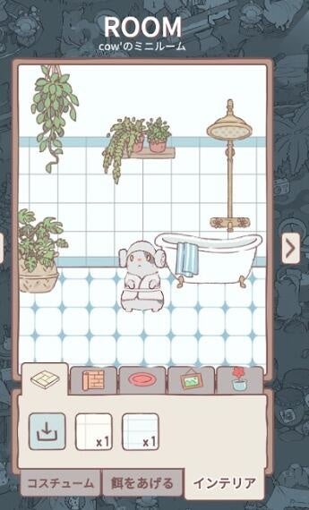 「バスルームタワー」、「湯舟」、「観葉植物」といった家具などが登場しておりますので、是非ご利用ください。