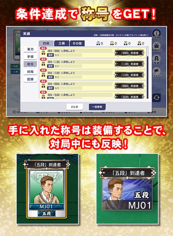 『MJ』をプレイすることで達成できる実績機能が追加され、称号が獲得できるようになりました。