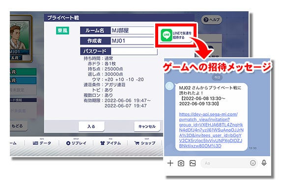 LINE で簡単にプライベート戦に参加できる招待メッセージが送れるようになりました。