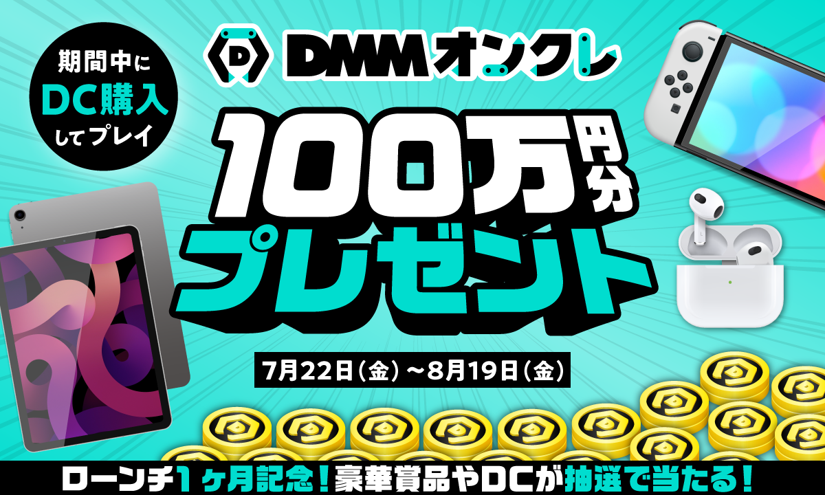 株式会社DMMオンクレ(本社:東京都港区、CEO:松縄貴重、以下、DMMオンクレ)」は、サービスローンチ1ヶ月を記念して、7月22日(金)~8月19日(金)の期間限定で、抽選で約400名に総額100万円分の景品が当たる「総額100万円分プレゼントキャンペーン」を実施します。