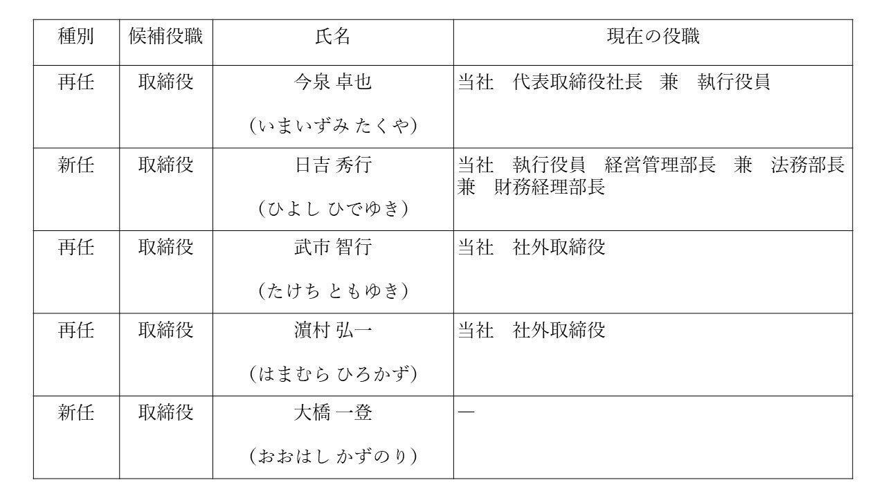 ※ 武市智行氏、濵村弘一氏、大橋一登氏は、会社法に定める社外取締役の候補者であります。